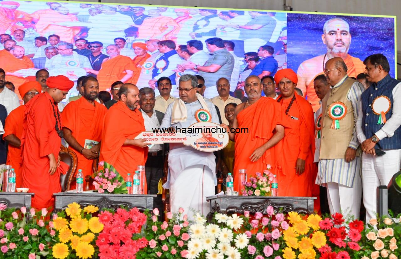 ಕಾಗಿನೆಲೆ ಕನಕಗುರುಪೀಠದ ಶ್ರೀ ನಿರಂಜನಾನಂದಪುರಿ ಮಹಾಸ್ವಾಮಿಗಳ ದಿವ್ಯ ಸಾನಿಧ್ಯದಲ್ಲಿ ನಡೆದ ಬ್ರಹ್ಮಲೀನ ಜಗದ್ಗುರು ಶ್ರೀ ಬೀರೇಂದ್ರ ಕೇಶವ ತಾರಕಾನಂದಪುರಿ ಮಹಾಸ್ವಾಮಿಯವರ 19ನೇ ವರ್ಷದ ಪುಣ್ಯಾರಾಧನೆಯ ಸ್ಮರಣಾರ್ಥವಾಗಿ ಶ್ರೀ ಕಾಗಿನೆಲೆ ಮಹಾಸಂಸ್ಥಾನ ಕನಕಗುರುಪೀಠ, ಶಾಖಾಮಠ, ಕೇತೋಹಳ್ಳಿ ಬೆಂಗಳೂರಿನ ಭಕ್ತ ಭಂಡಾರದ ಕುಟೀರವನ್ನು ಮುಖ್ಯಮಂತ್ರಿ ಸಿದ್ದರಾಮಯ್ಯ ಅವರು ಲೋಕಾರ್ಪಣೆಗೊಳಿಸಿ, ಮಾತನಾಡಿದರು.