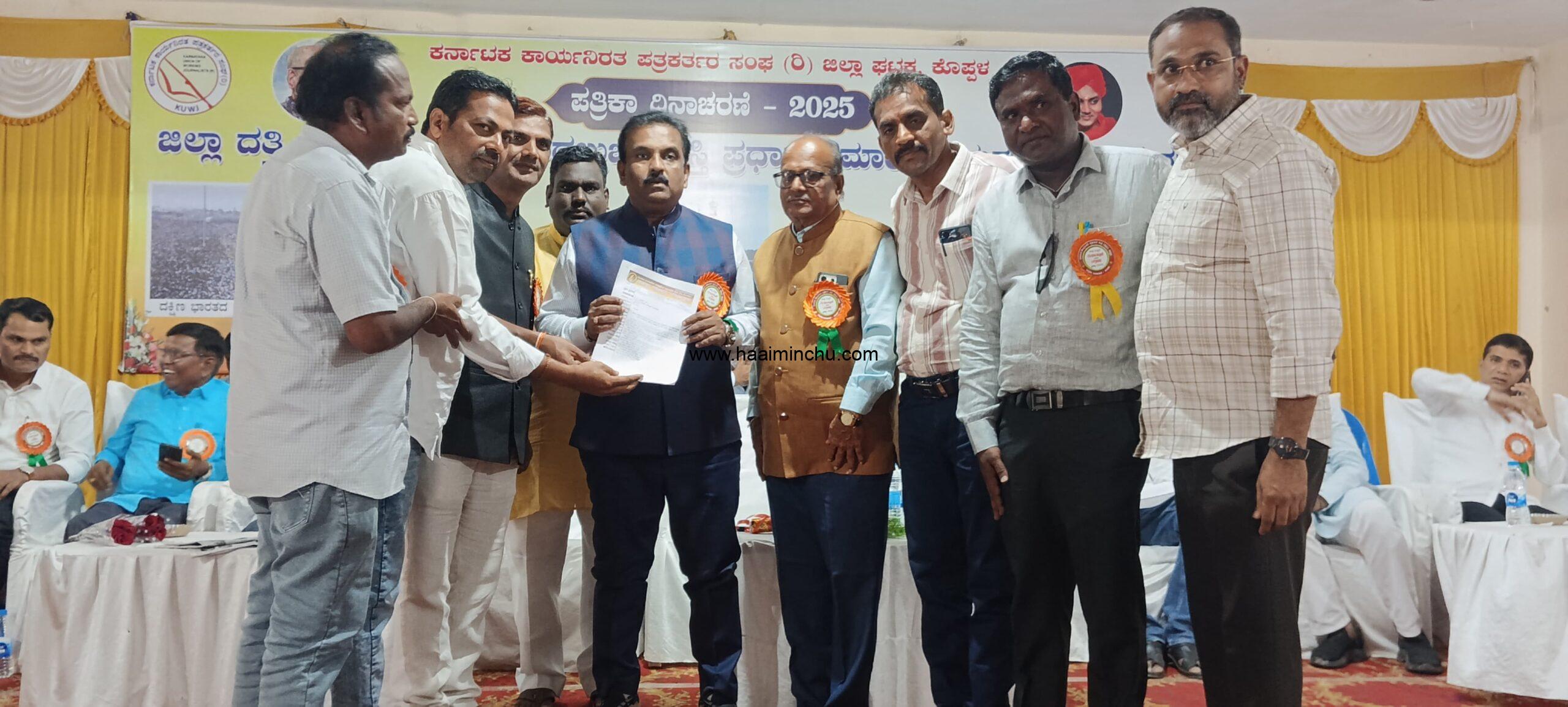 ಕೊಪ್ಪಳದ ಸರ್ಕಾರಿ ನೌಕರರ ಸಾಂಸ್ಕೃತಿಕ ಭವನದಲ್ಲಿ ಶನಿವಾರ ಕರ್ನಾಟಕ ಕಾರ್ಯನಿರತ ಪತ್ರಕರ್ತರ ಸಂಘದ ಜಿಲ್ಲಾ ಘಟಕ ಹಮ್ಮಿಕೊಂಡಿದ್ದ ಪತ್ರಿಕಾ ದಿನಾಚರಣೆ, ಪ್ರಶಸ್ತಿ ಪ್ರಧಾನ ಸಮಾರಂಭ, ಪ್ರತಿಭಾ ಪುರಸ್ಕಾರ ಕಾರ್ಯಕ್ರಮದಲ್ಲಿ ಪ್ರಭಾಕರ್ ಭಾಗಿಯಾಗಿದ್ದರು.