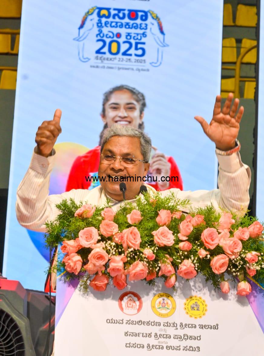 ಅವರು ಇಂದು ಮೈಸೂರಿನ ಚಾಮುಂಡಿ ವಿಹಾರ ಕ್ರೀಡಾಂಗಣದಲ್ಲಿ ಆಯೋಜಿಸಲಾಗಿದ್ದ ರಾಜ್ಯ ದಸರಾ ಸಿಎಂ ಕಪ್ ಕ್ರೀಡಾಕೂಟ ವನ್ನು ಉದ್ಘಾಟಿಸಿ ಮಾತನಾಡಿದರು.
